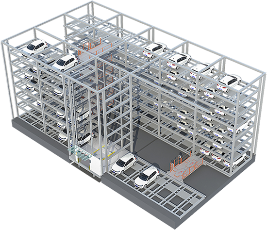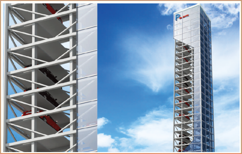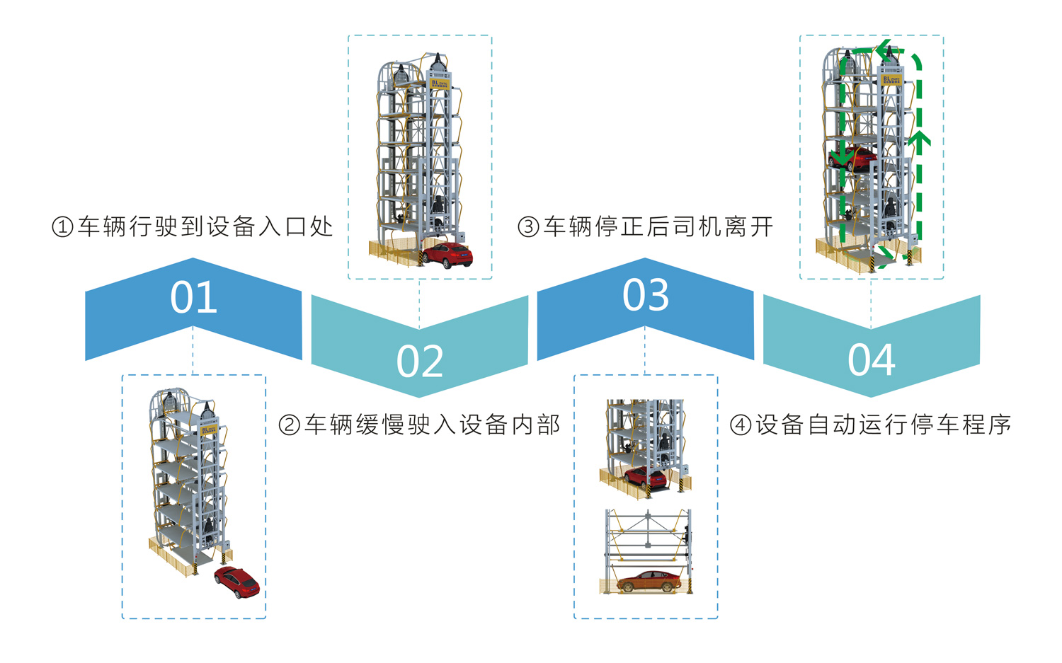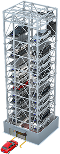 垂直升降類機(jī)械式停車設(shè)備亦可稱之為“塔庫(kù)”,主要通過(guò)升降裝置的升降和裝在升降裝置上的智能搬運(yùn)器將車輛搬運(yùn)至固定車位上,從而實(shí)現(xiàn)車輛的存取。